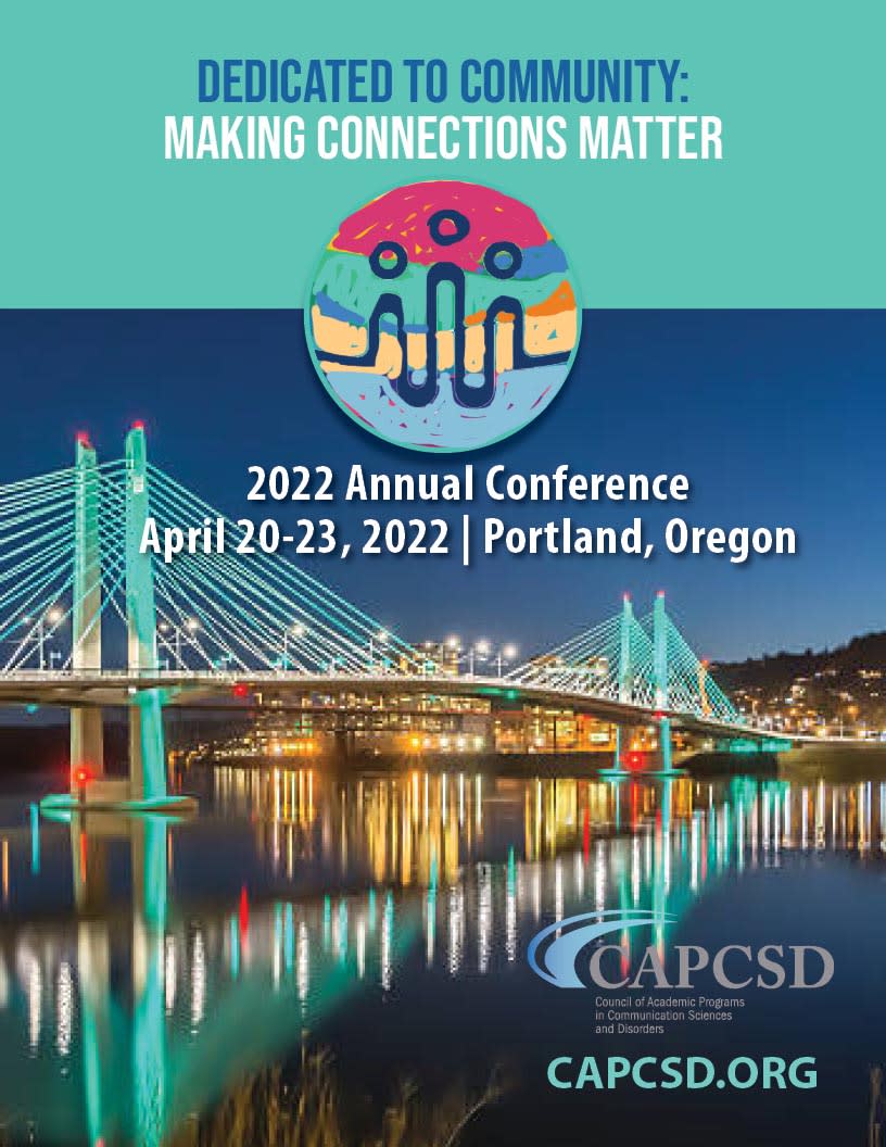 The CAPCSD Annual Conference is held in various cities across the US every spring. In 2022, we return to an in-person event. Over the past 42 years, the conference has gained the reputation for being the leading site for collaborating, connecting, and exploring issues in our field for current and future administrators in Speech and Hearing Departments across the nation. The conference, based heavily on attendee feedback, is designed to offer sessions to inform administrators on hot topics, whether you are a Dean, Chair, Program Director, Clinic Director, or Faculty. We are pleased to offer invited sessions from leaders of the field. In addition, the conference receives over a hundred call-for-papers proposals, adding to the diversity and dynamic of the available talks. In 2022, CAPCSD will also include poster sessions. The conference layout is arranged to create a fun and social environment, where attendees can enjoy time to network with colleagues.