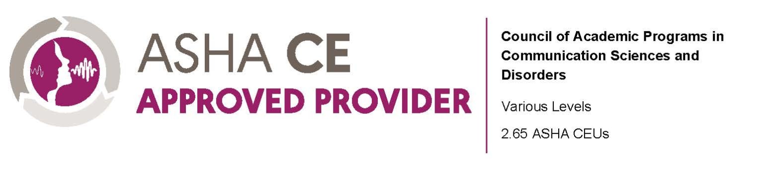 The Council of Academic Programs in Communication Sciences and Disorders is approved by the American Academy of Audiology to offer Academy CEUs for this activity. The program is worth a maximum of TBD CEUs. Academy approval of this continuing education activity is based on course content only and does not imply endorsement of course content, specific products, or clinical procedure, or adherence of the event to the Academy’s Code of Ethics. Any views that are presented are those of the presenter/CE Provider and not necessarily of the American Academy of Audiology.